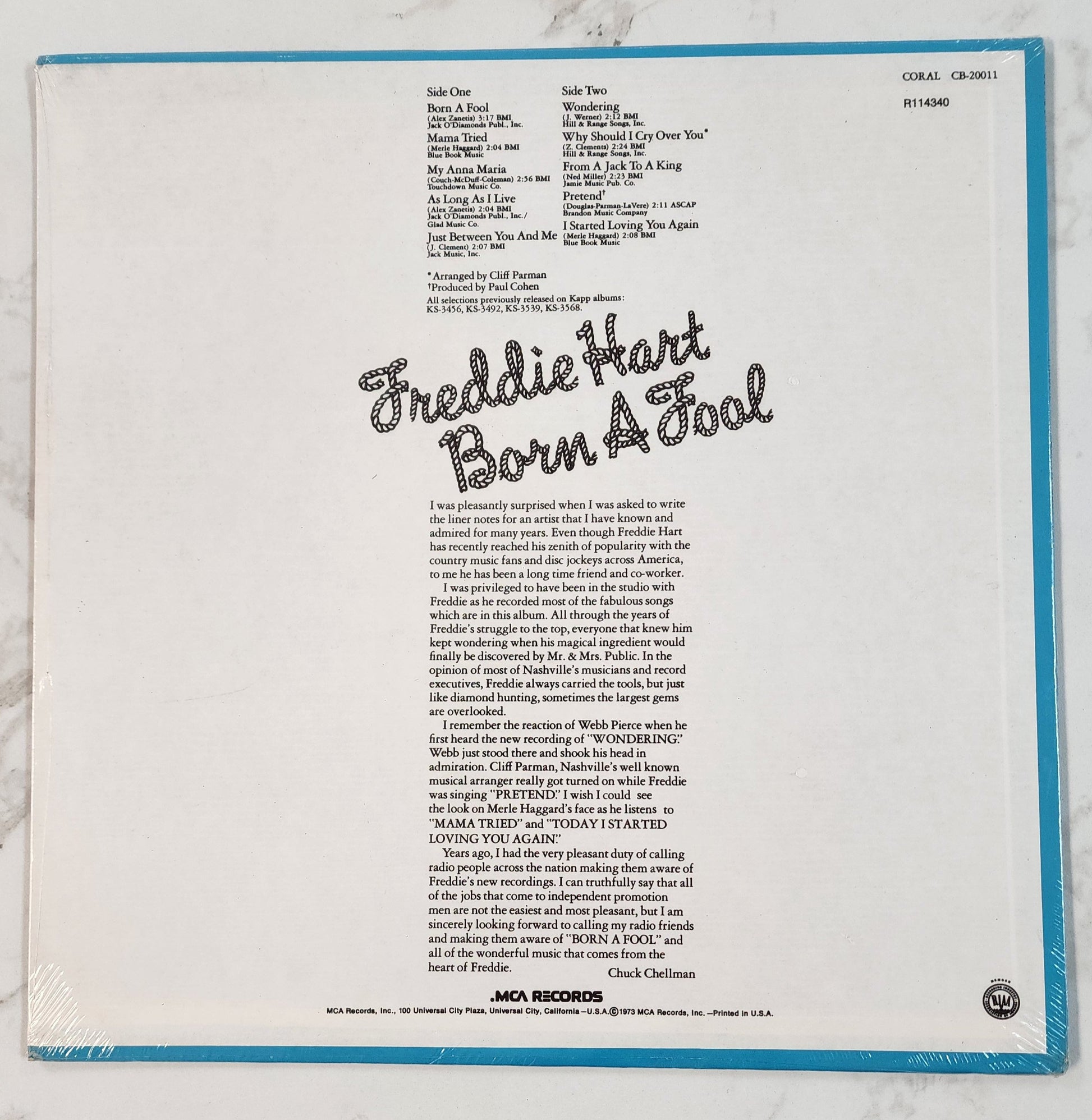Freddie Hart Born a Fool Vinyl Record Album